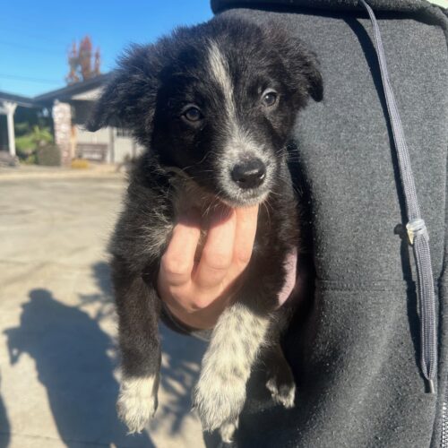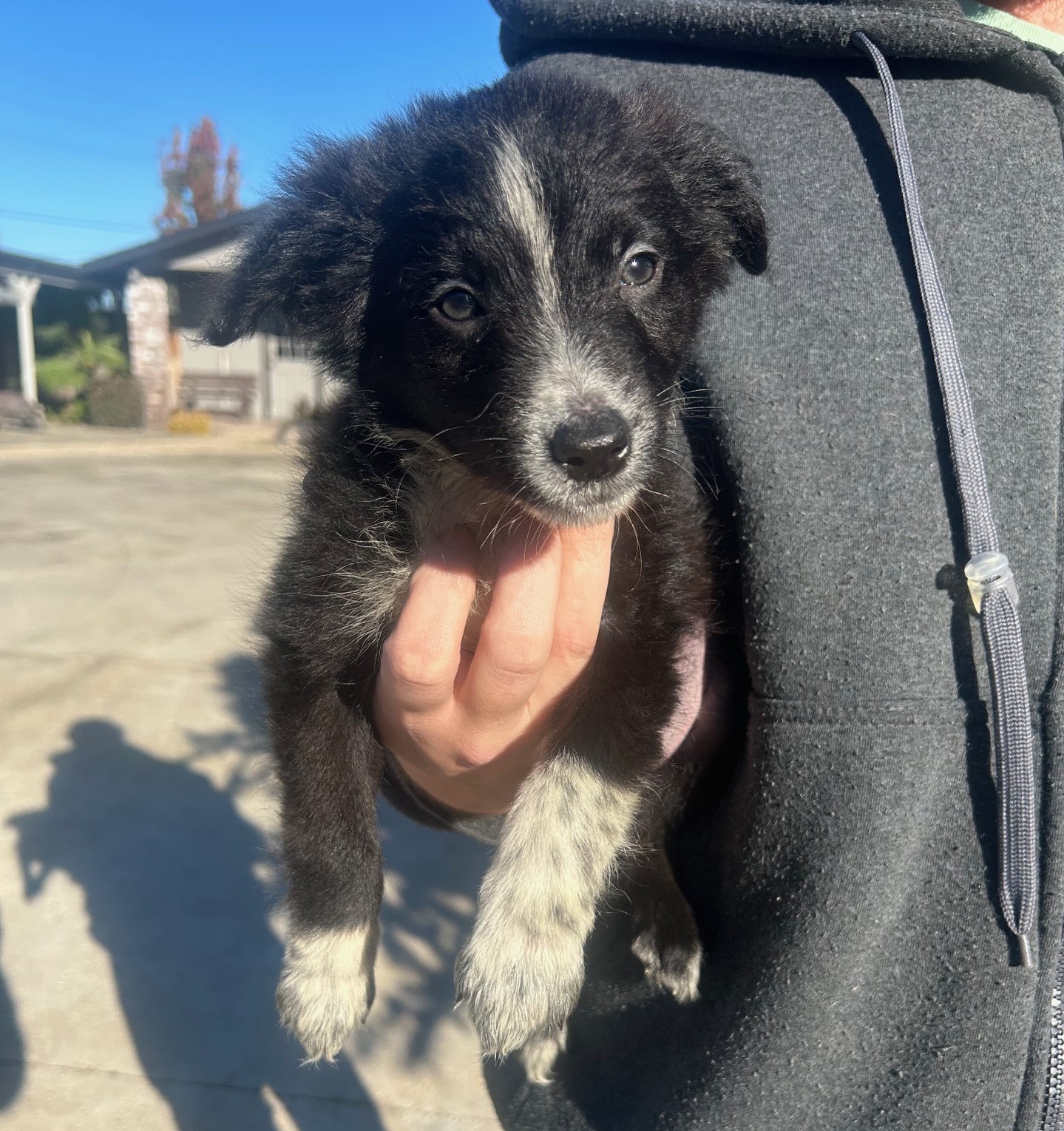 This adorable puppy was part of a litter of 9 born around 10/1/24! We were told there is Border Collie and Malinois, but they are very small, so we feel they may have a smaller breed in the mixture. The pups in this litter will likely be on the medium-size range, so should look like a miniature version of either a Border Collie or Malinois (how fun!) Pup has been started on it's shot series, is microchipped and has an appointment to be spayed or neutered on 12/17 so will be able to go home the following day. $350.00 adoption helps us with all their care.