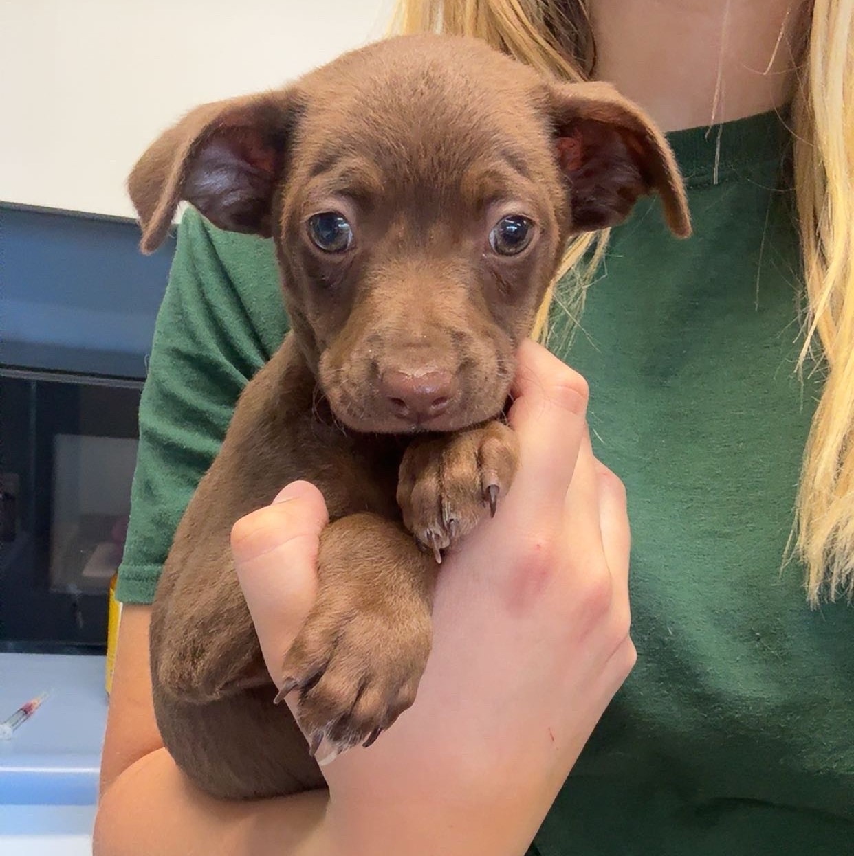 Sweet little Bobby only weighs in at 4 pounds!  He is a mystery mix, but really looks like maybe a Doxie mixed with a Chihuahua.  We have vaccinated and microchipped this little peanut, and he has a neuter appointment on 11/18, so he can go home to enjoy Thanksgiving with his new family.  We hope you can come by and meet Bobby and adopt him today!  $350.00 adoption.