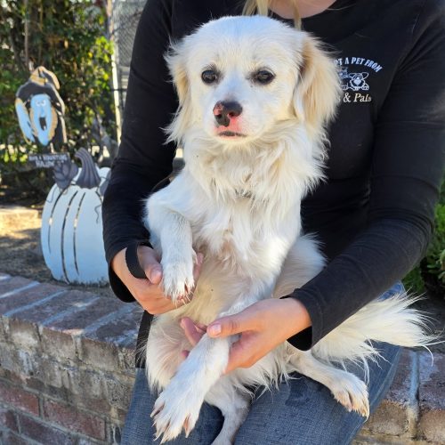 This sweet, white, longhaired Chi/Terrier mix is pure lap-dog material, and, in the spirit of Halloween, we named Casper! He is a young boy, likely born around February. He's light and lanky, only 16 lbs. Despite being found as a stray, he's ready to shower his new family with love. He is cute, affectionate, and melts for attention. He seems sweet with dogs, but he hasn't been tested with cats or kids. We are accepting applications for Casper now, though his stray hold is active until November 13th. On that date, he will be receiving his neuter surgery and microchip, and he is already current on all vaccines. Apply today to make this snuggle monster a part of your life! $350 adoption fee.