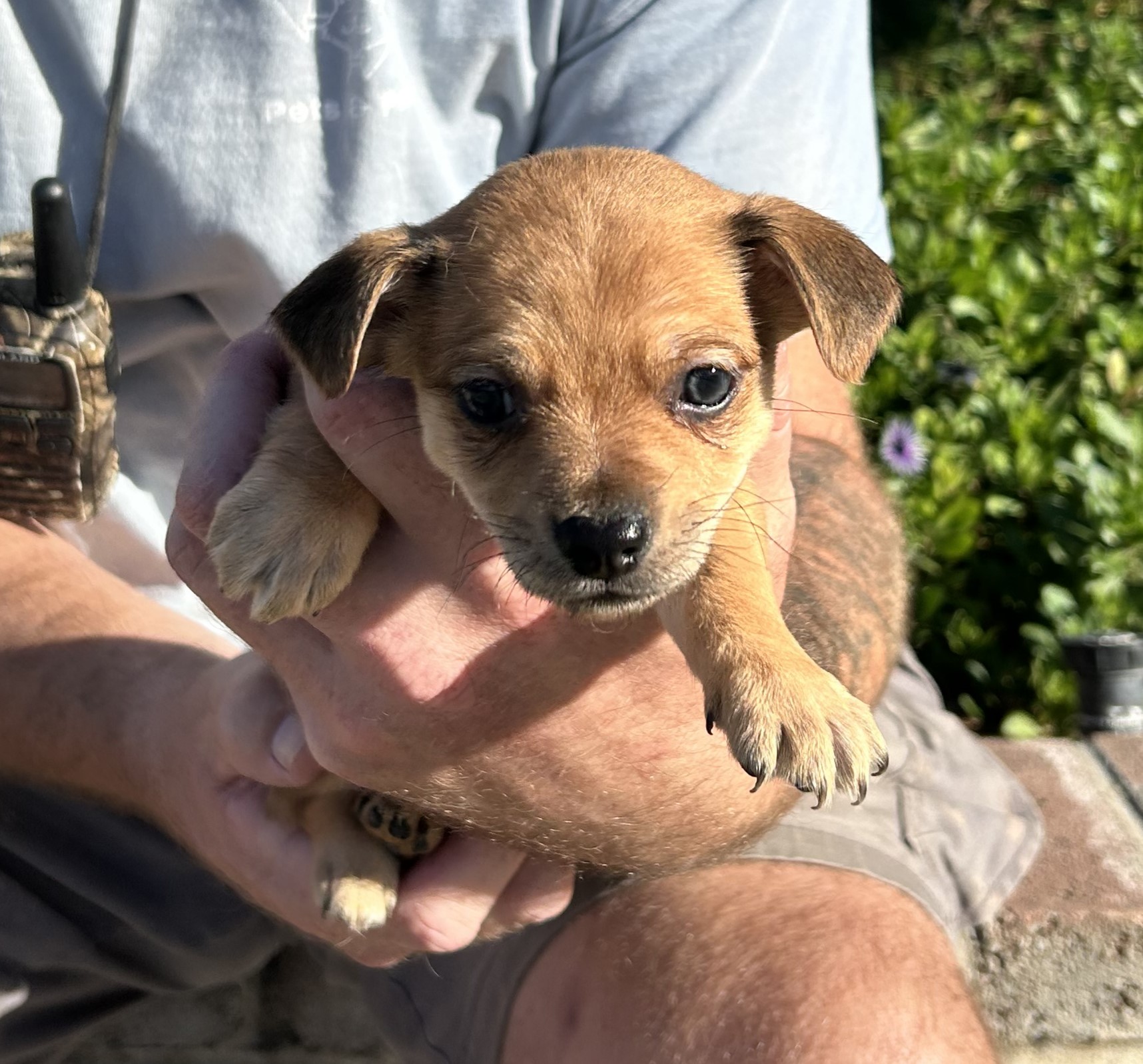 This fun puppy is very sweet.  The breed combination is very unusual, but that is what we were told.  The person who brought them in said their neighbor's home burned down and when they left the premises, they left behind their dogs.  We are guessing that maybe the dogs on the property were Border Collie and Toy Chihuahua so that's where the mixture came in.  All puppies in this litter are under 3 pounds, so this pup will be small when fully grown.  We have given first puppy shots, and puppy will be microchipped and neutered.   We'd love to have you come for a meet and greet.  $350.00 adoption.