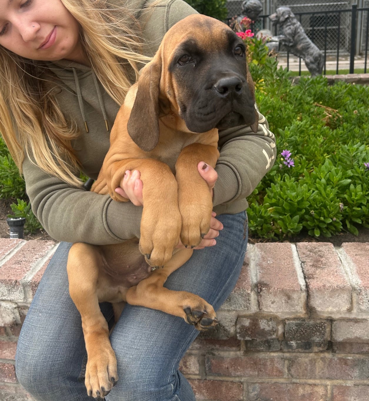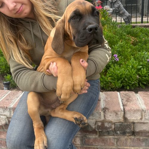 This adorable pup was born 7/2/25 and was part of a litter of 10. We have taken in some of the puppies to help find new homes for them. Dad was a Mastiff, and mom was a Mastiff/Cane Corso mix (both over 100 pounds), so expect a very large dog when fully grown. We have started the first series of puppy vaccinations, wormer, and microchipping. Puppy has a neuter appointment on 10/9 and can leave the next day. Please come meet this big old floppy baby today! $350.00 adoption. Apply to adopt the pup today! Due to their breeds, applicants with good vet references will be considered first.