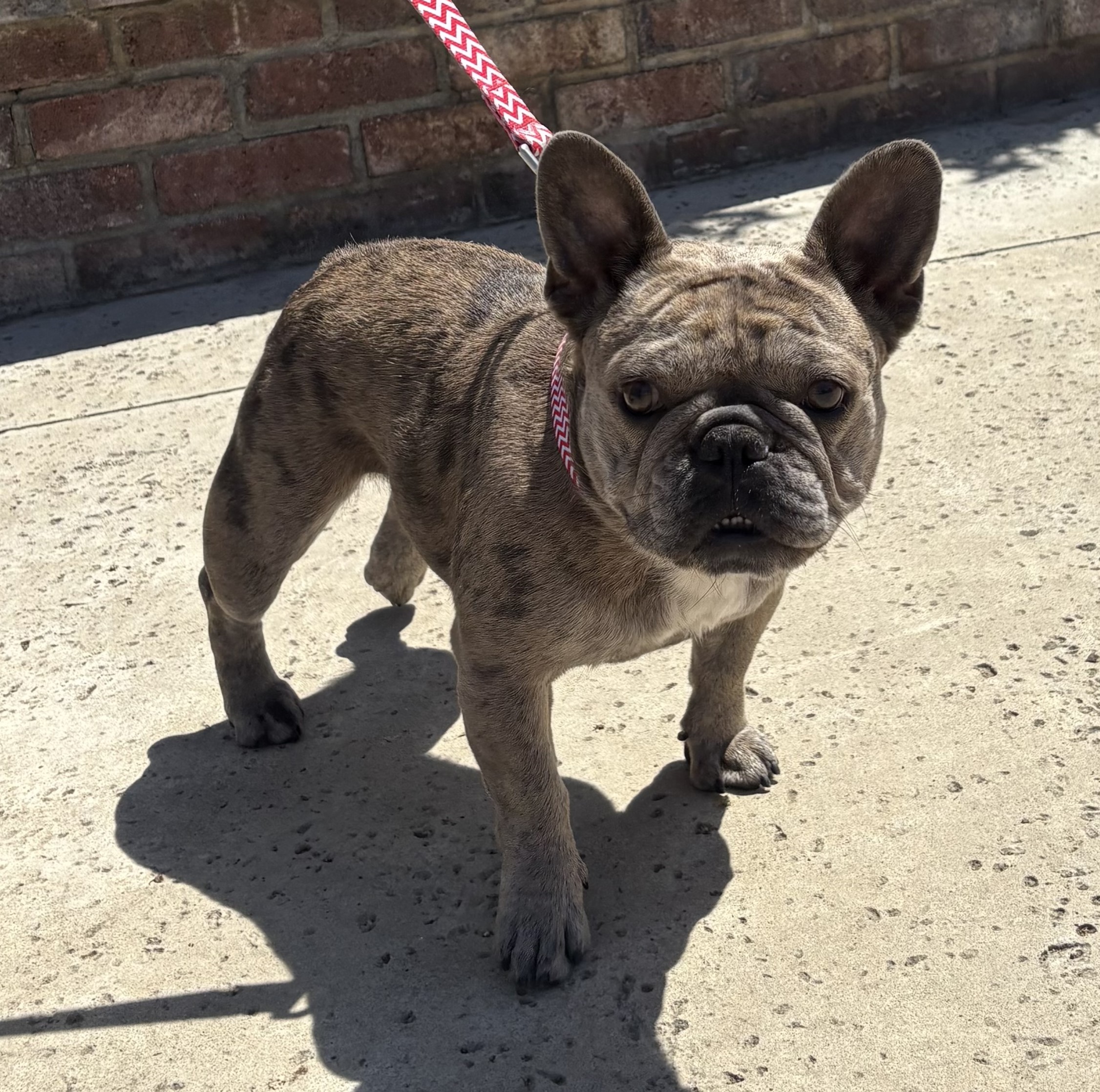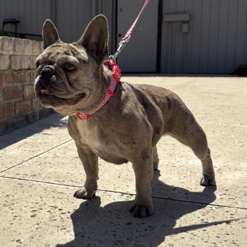 This sweet Frenchie girl is Rainy. She was found as a stray, but she's got a lot of love to give. She is estimated to be between 3 and 4 years old, and she currently weighs 24 lbs. The person who found Rainy could only give us basic information; she seemed good with her 5-year-old, and she rode well in the car on the way to the shelter. She also seemed housetrained and used the provided potty pads. Her new owner would need to continue her training so she knows where to go. Since she was found as a stray, we will have her on a stray hold until 9/4, but we're accepting applications for her now. $350.00 adoption fee includes her spay, microchip, and vaccines. She can go home as early as 9/17, the day after her spay. Apply at www.petsnpals.org for a chance to meet this sweetie!