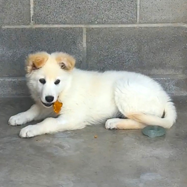 This cute puppy is a combo of Husky and Pyrenees and was born 1/27/26. Puppy will be large and hairy when fully grown, but will be so much fun! Owner had a Pyrenees and Husky loose on the property and had an unexpected litter. We have started puppy on the first set of shots and will be altered and microchipped before leaving the shelter. If you want a lovely, large-breed pup, we've got you covered! $350.00 adoption.