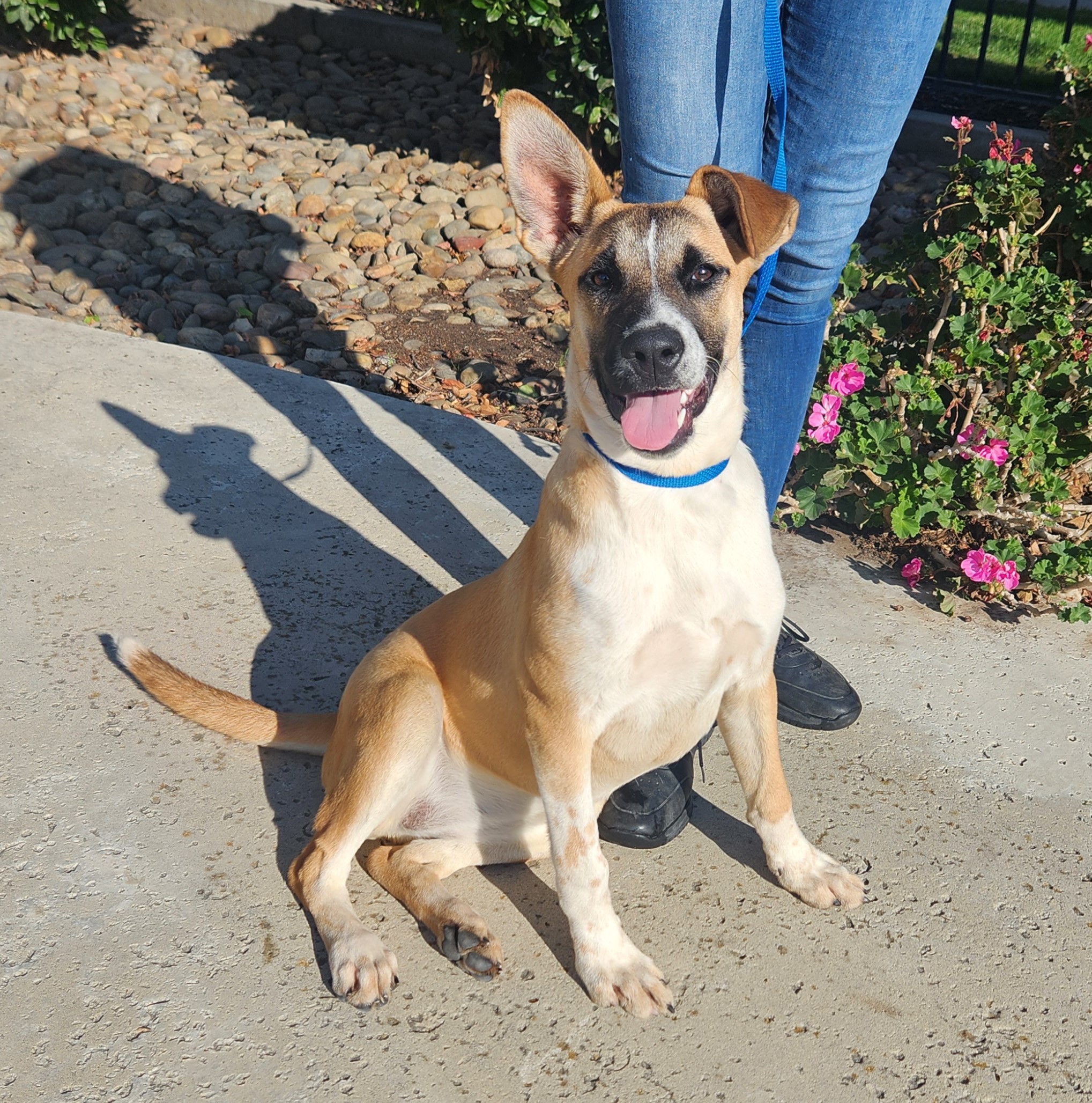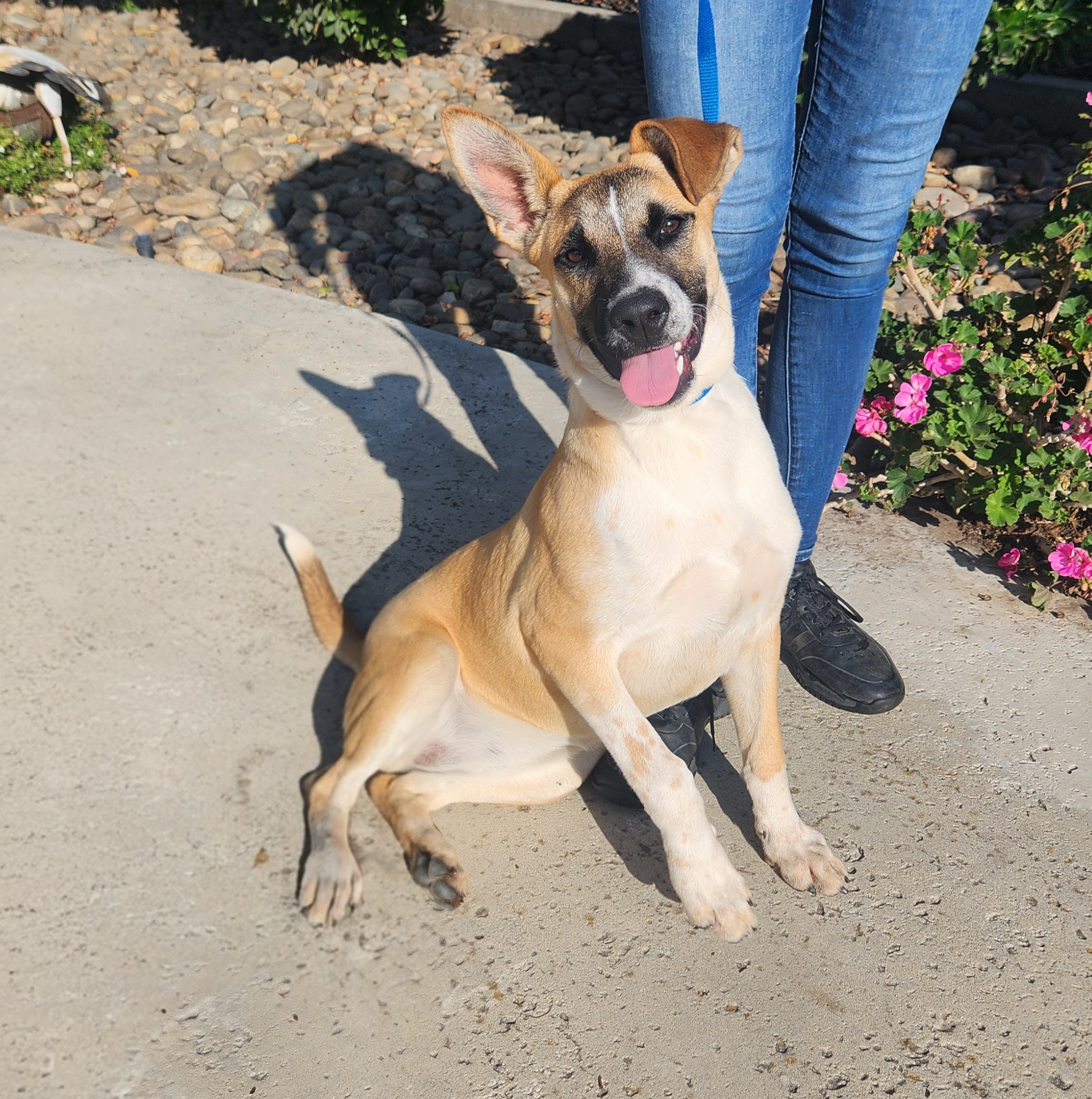 Sweet Goose is ready to fly into your heart! This adorable medium-sized pup, born on April 5, 2025, is as wonderful as she is resilient. Her microchip tells us a story - she was adopted as just a small puppy by at Stockton Animal Shelter. We don't know why she was found wandering all by herself at just 6 months old - mere months after being promised a forever home - but she's here safe with us until she finds her new family. Her love of people never wavered, but we hope she never has to experience a broken promise ever again. She weighs in at 23 pounds on intake and is still growing into her lanky legs. Her breed mix is unknown, but her appearance has a Basenji-Boxer look. She is a unique beauty. She has the silliest little bouncy walk and is curious about everyone she meets. She is already microchipped, vaccinated, and spayed. If you're ready to give this sweet girl the stable, loving home she deserves, apply to adopt Goose at www.petsnpals.org today! $350 adoption fee.