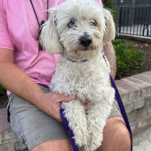 Meet Jasper, an approximate 2-year-old Maltipoo (we think). Jasper was found as a stray, and the finder really wanted to keep him, but her child was allergic. He has beautiful light blue eyes and only weighs 11 pounds. Due to her daughter's allergic reaction, he stayed outdoors, so she was unable to tell if he was potty-trained, but he may have been in his past. He looks like he has had regular grooming and will need to have grooming in the future to keep his coat from matting. The person who had him said he did well with her children. He seems like a good little dog who needs a new place to call home if his owners do not claim him. He is already neutered, and we have vaccinated him and microchipped him for his next family. $350.00 adoption.