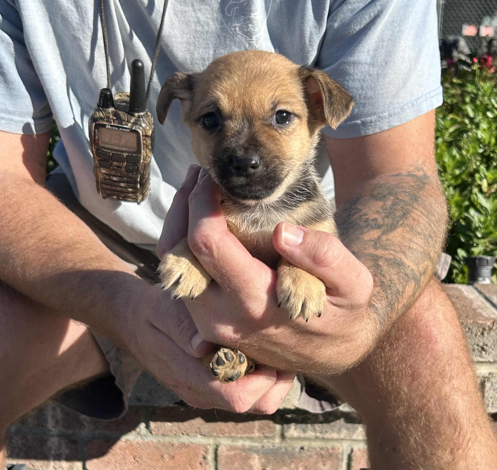This fun puppy is very sweet. The breed combination is very unusual, but that is what we were told. The person who brought them in said their neighbor's home burned down and when they left the premises, they left behind their dogs. We are guessing that maybe the dogs on the property were Border Collie and Toy Chihuahua so that's where the mixture came in. All puppies in this litter are under 3 pounds, so this pup will be small when fully grown. We have given first puppy shots, and puppy will be microchipped and neutered. We'd love to have you come for a meet and greet. $350.00 adoption.