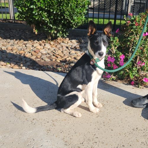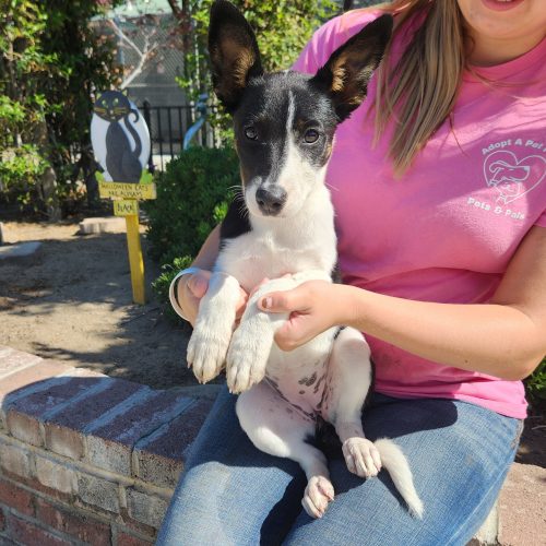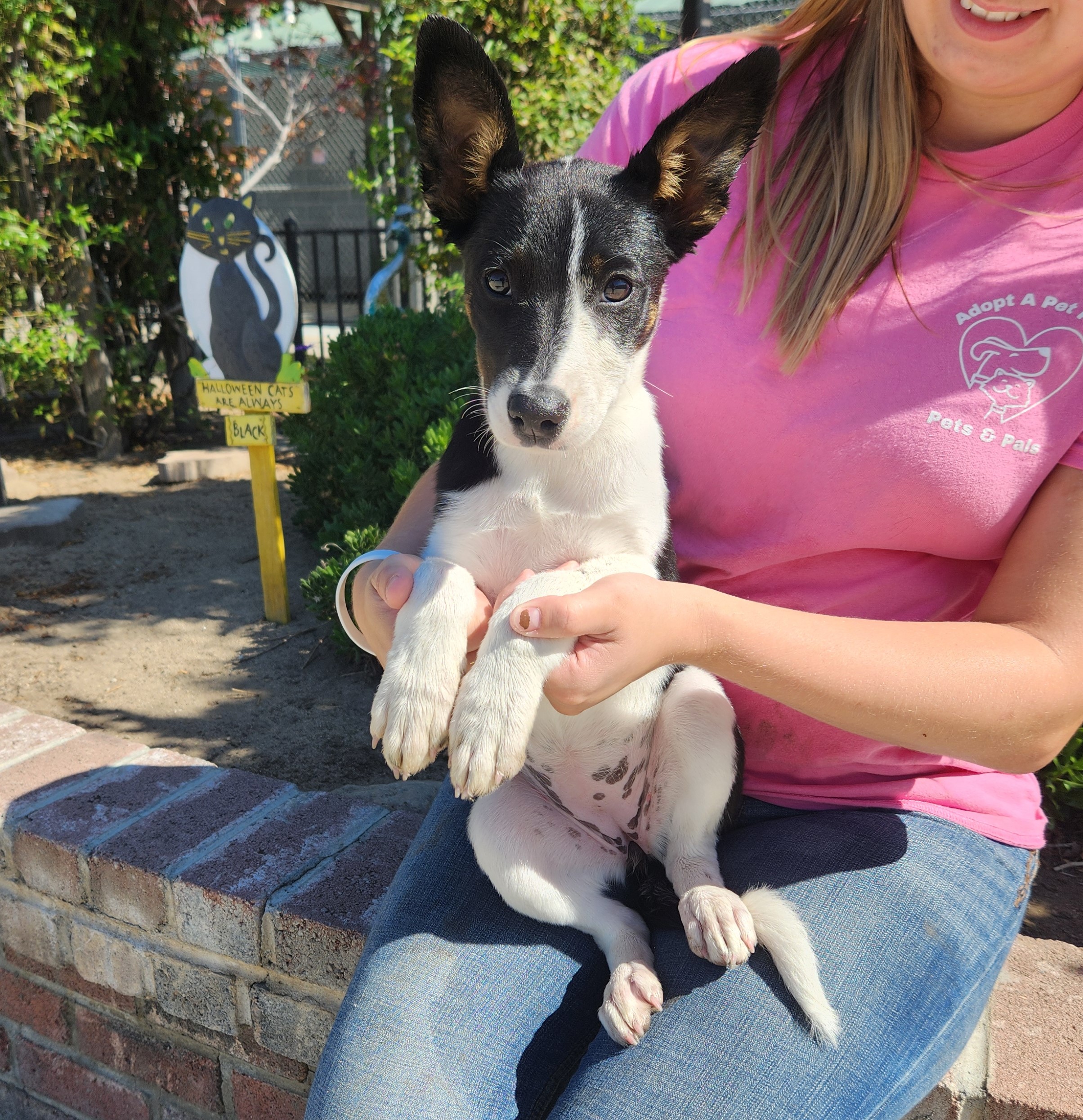 Little Tasha is a 14-pound mixed-breed. We're taking a wild guess on her breed mix, but she looks like she could be a mixture of Rat Terrier and Border Collie. If we are right, she will be a brilliant dog! She is only about 10 weeks old (estimated DOB is 7/30/25). The person who found her said she was good with her dog, cat, and kids as well. We have bathed this pretty girl, and she will be started on her first set of puppy vaccinations and be microchipped. She has a spay appointment on 10/21 and can leave the shelter the following day. $350.00 for this adorable and fun-loving pup.