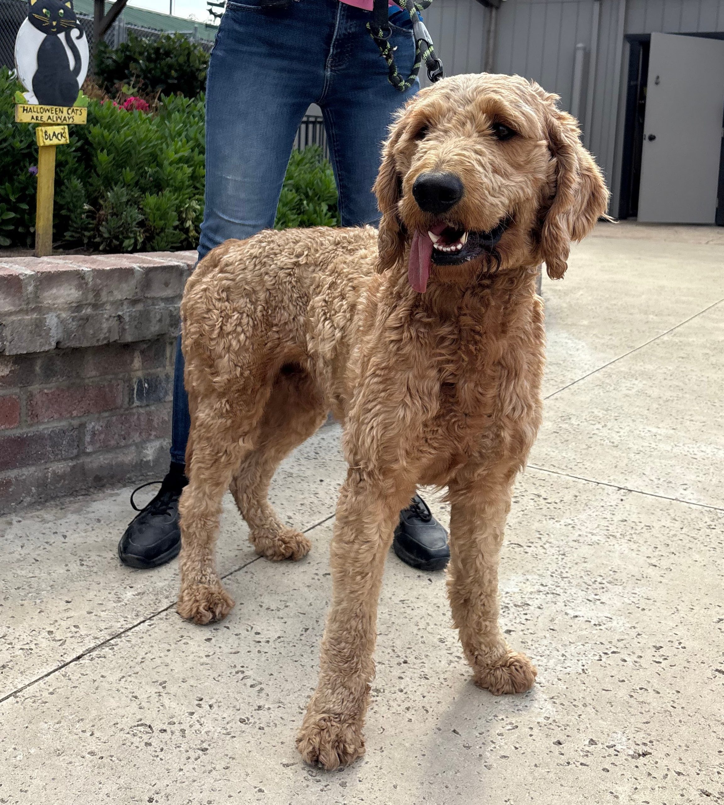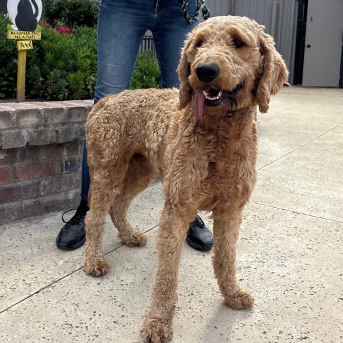 Meet Leo, a lovely male Goldendoodle who is about 1.5 to 2 years of age. Leo was originally found wandering, and the person who found him had him for a month with no success in locating an owner. Leo stayed in the yard with their German Shepherd during the day and was not allowed inside, so we are unsure of house manners. Leo seems like a smartie, so we are confident he will be able to learn anything he has not been taught. He was good with the kids in the home, aged 4 and up. We don't know of his history with cats, as they did not have one. Leo will need regular grooming to maintain his coat's appearance. He was a bit on the thin side, weighing 56 pounds when he arrived, but he has already gained up to 62 pounds, so he is almost at his full weight. We have vaccinated and microchipped him, and he has a neuter appointment on 11/4, so he can leave the following day. $350.00 adoption.