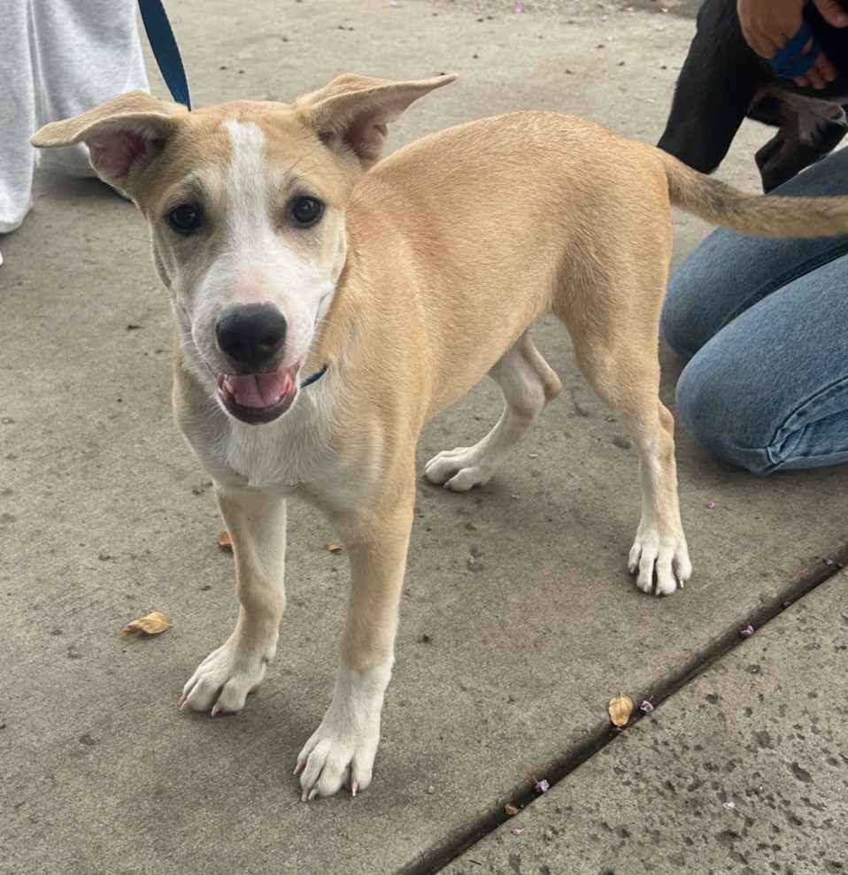 This beautiful puppy was found on the side of a busy road with their siblings. We are not sure of the breed, but it looks very much like a Cattledog mix, which will be medium-sized when fully grown.  Their story is one of both heartbreak and survival. The puppies had clearly been abandoned, left with no food, no shelter, and no one to keep them safe. Tragically, one of their siblings didn’t survive—struck by a passing car before help could arrive.  The surviving puppies were frightened and unable to fend for themselves. Fortunately, a kind person picked them up.  When they arrived here, they relied on each other for comfort and were so scared.  But in a very short amount of time, with the love and care of our staff, these resilient pups began to recover. Slowly, their tails started to wag and their playful spirits emerged. Today, each of them has a chance at the happy, safe life their sibling never got to experience.  Their journey is a reminder of the harsh reality many animals in our community face, but also of the incredible resilience and hope that can grow when compassion steps in.  She has an appointment on 10/8 to be spayed and can go home to her new family the very next day.  Current size is 27 pounds.  $350.00 adoption includes the surgery, vaccinations, and microchipping.