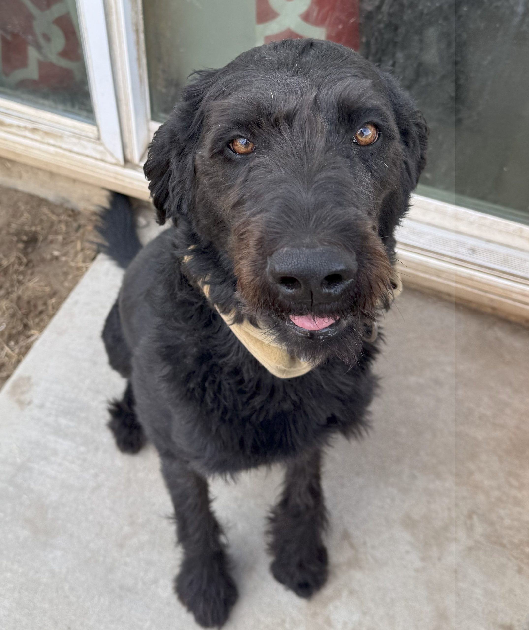 Say hello to Rex, a cheerful 2-year-old (born 3/20/2023) Labradoodle with a curly coat, a joyful bounce, and an infectious enthusiasm for life! Weighing in at 64 pounds, this handsome boy is full of love, energy, and charm. Rex came to us after his previous family had a change in home life that made it difficult to give a dog of his energy level the attention he deserves. While they were heartbroken to say goodbye, they made sure we knew what a special boy he is—and we couldn't agree more! This playful pup loves meeting new people, soaking up attention, and going for rides in the car (windows down, please!). Rex has shown signs that he'd be wonderful with children, as his "person" was a 7-year-old boy. He may be a bit boisterous for some young ones, though! According to his family, his favorite things include going for runs, playing fetch, and chewing on his chew toys. The owner reported that he reliably waits to be let out to go potty, but much of his time was spent outside. He would benefit from some additional obedience training, as he is quite strong on leash ("We're not going for a walk, we're simply heading to the next exciting scent opportunity!"). He's an affectionate and fun-loving companion who will also keep up with your active lifestyle.