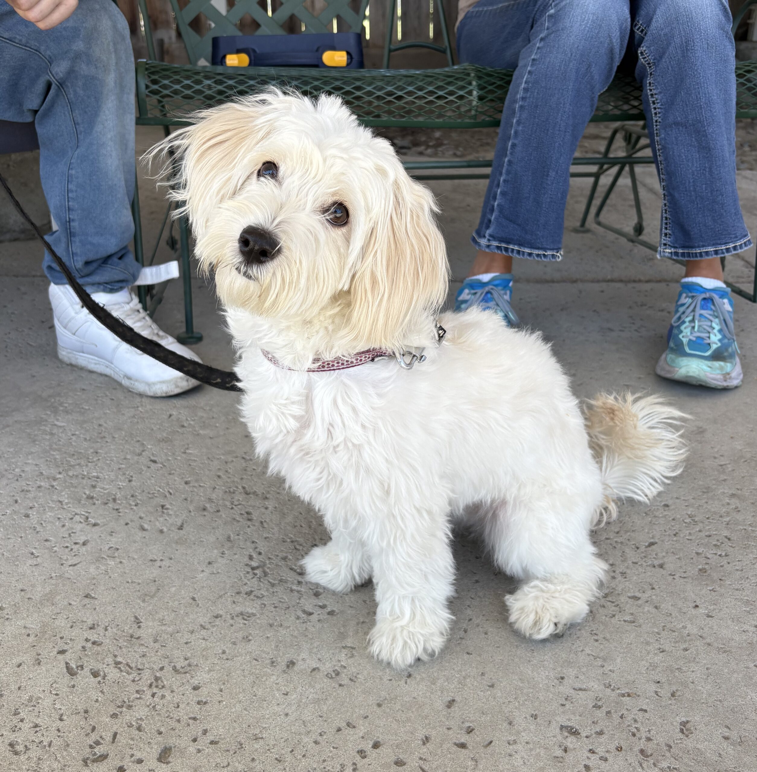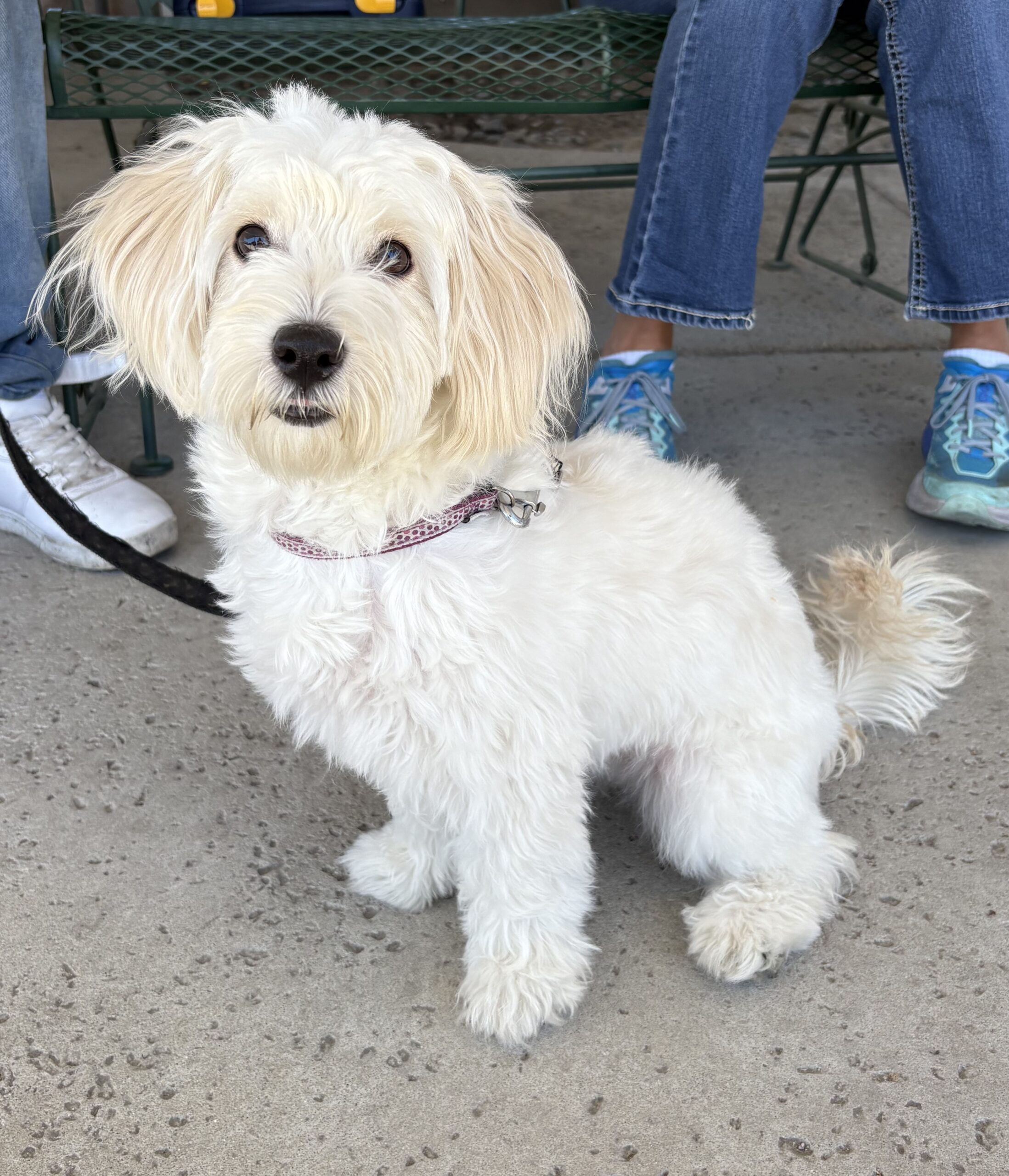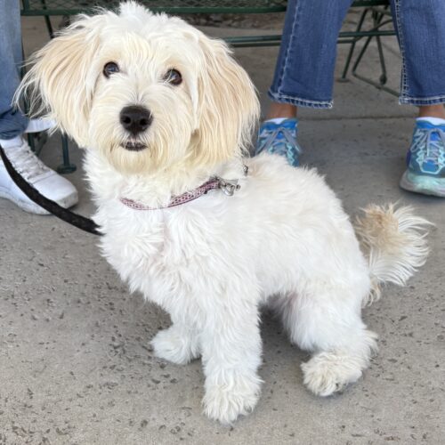 Don't let that cut face fool you-Rosie is pretty energetic! She is about 10 months old, weighs 14 pounds, and loves to run and play. Her owner moved away and left her behind, and she had too much energy for the older adult who wanted to keep her. She is very sweet but can definitely use some training on manners. She is still a little mouthy, as she was likely not taught the ropes as a younger puppy. She has been around cats, but will try to pounce on them to play, and the cat did not appreciate that! We feel Rosie may enjoy being in an active home with kids and another dog her size to burn off her energy. She is not a barker and rides very well in the car. The former owner says she is doing well with potty training. She still has some puppy chewing stuff going on, but nothing excessive. $350.00 adoption for this great pup.