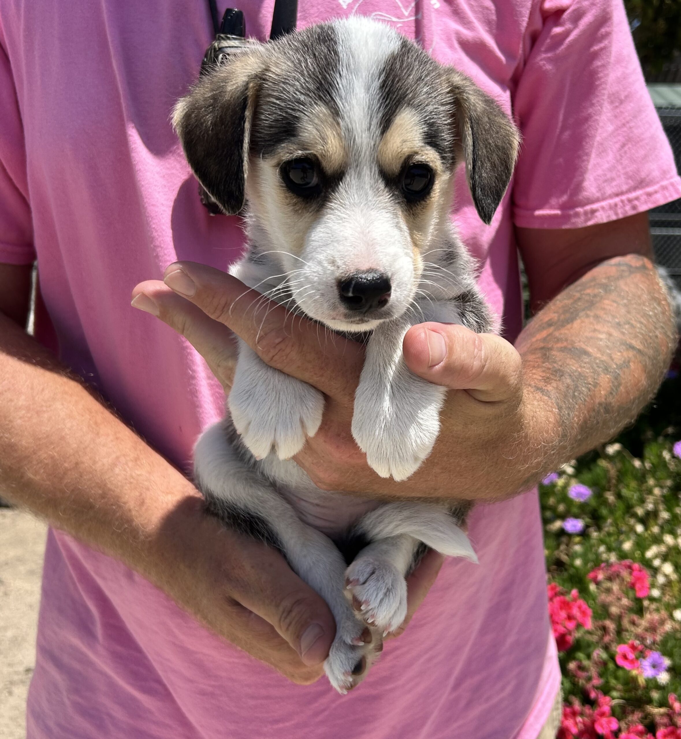 This adorable pup was found abandoned in a box with several siblings, so we are hoping to find a loving home where she can have a great life. Based on the teeth, we estimate pup was born around 4/9/25. The breed combo is based on features we see, but don't hold us to it if a DNA test says otherwise! It is likely that there are many different mixes in this fun litter. It doesn't appear that fully grown pup will be large, more than likely she will be small to medium. We have started pup on first shots and worming, and she will be spayed on 6/13. $350.00 will help us with the cost of the spay, vaccinations and microchipping.