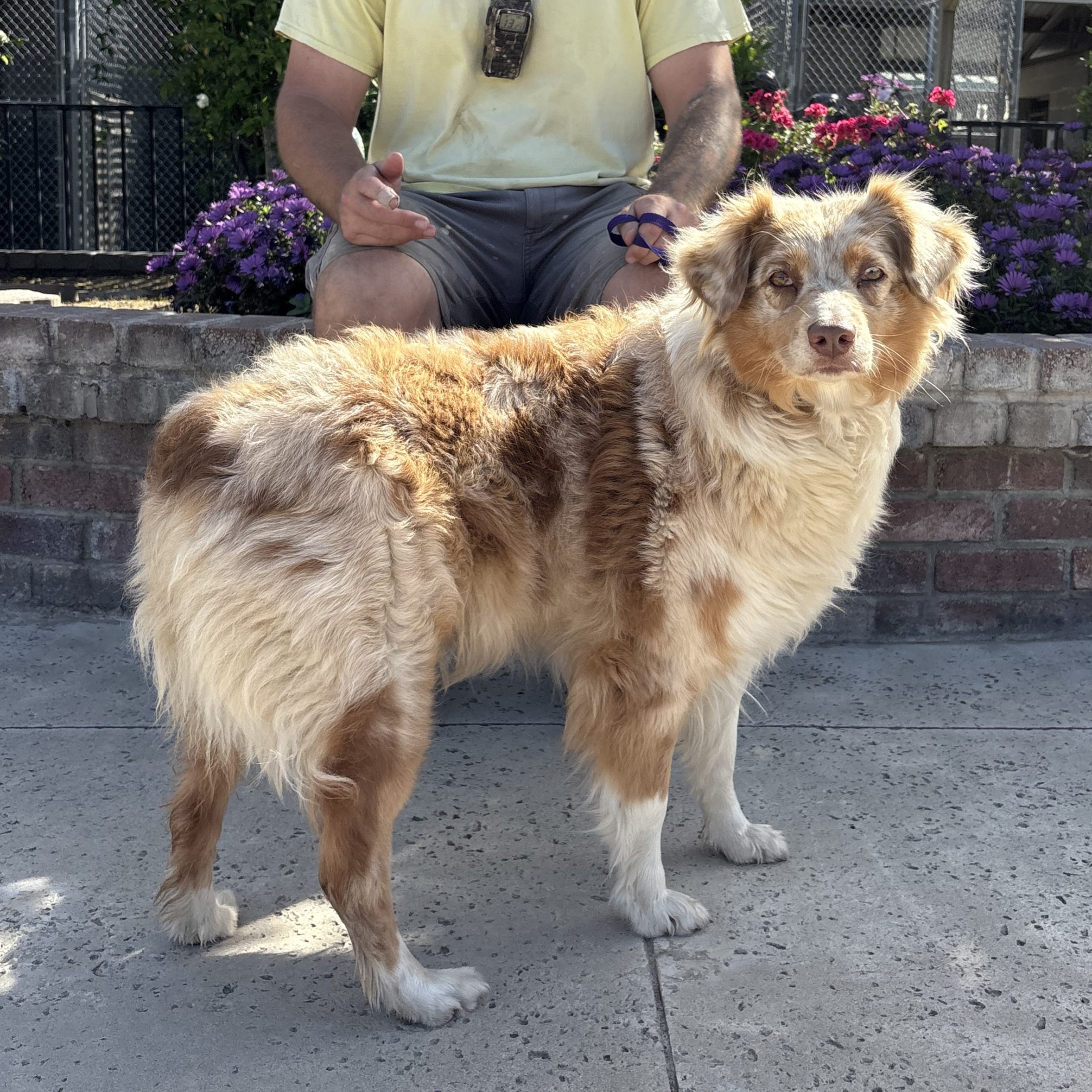 Sky is sure to prove to you that the best chapters can start at any age. At 49 lbs, this purebred (supposedly, not papered) Australian Shepherd is the perfect medium-sized companion—big enough for sturdy adventures, but small enough for a good cuddle. Born on 2/15/2021, she is just entering the prime of her life and is absolutely bursting with energy and joy. For much of her life, Sky’s "job" was being a mother. While she was a dedicated mom dog, she was primarily kept as an outside pet. Due to a change in her owner’s schedule, she was brought to us so she could finally experience what it’s like to be the center of someone’s world. Because Sky has spent most of her time outdoors, she is a bit of a blank slate when it comes to indoor living. Her new family will need to be diligent and patient with housetraining. She’s smart—like any Aussie—and eager to please, but she’ll need you to show her the ropes of being an "indoor dog." She is accustomed to living with other dogs. However, to ensure a perfect match, we require any resident dogs to come to the shelter for a meet-and-greet.