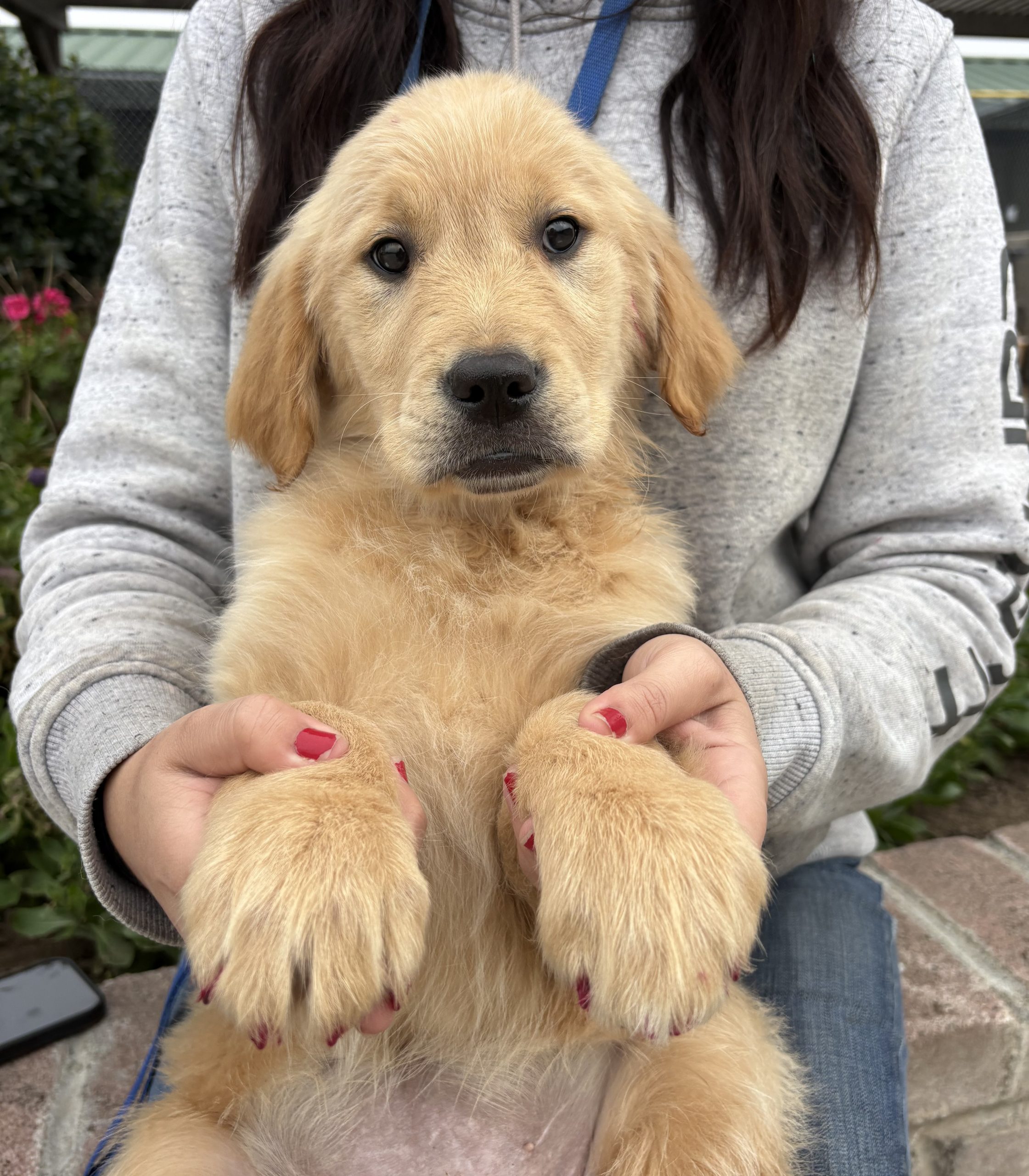 This beautiful pup was born 10/26/2025. It was a result of an accidental litter while owner was away having a surgery. The house sitter did not properly keep the dogs seperate and an oopsie litter resulted. It is very rare that we have a litter of pure breed Golden Retriever puppies, so we are anticipating a high level of interest. We do not ship dogs out of state, so please do not apply if you are not able to drive to California to pick up after the spay surgery. We have started the puppy on it's first set of shots and worming, and it will be microchipped and spayed on 1/30. Puppy is absolutely adorable and won't last long, so apply soon! $450.00 adoption.