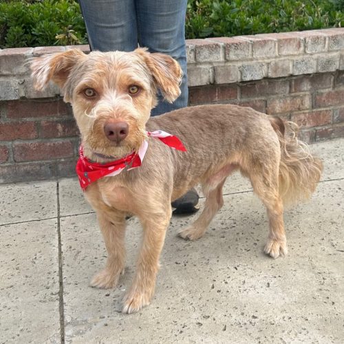 This sweet guy is Teddy.  He has been labeled an Irish Terrier Mix, but when his hair grows out it is long and flowing, so we are not sure if that is accurate or not.  We do know he is a super friendly pup with a happy personality.  He weighs 28 pounds.  He has lived with other dogs and kids as young as a year.  Due to family moving, we need to find Teddy a good home.  He is housetrained and enjoys a good car ride.  He is vaccinated, microchipped and will be neutered on 1/22.  $350.00 adoption for this great dog.