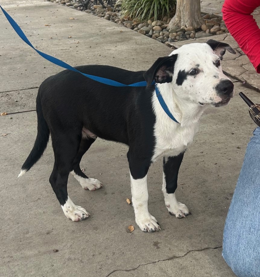 This beautiful puppy was found on the side of a busy road with their siblings. We are not sure of the breed, but it looks very much like a Cattledog mix, which will be medium-sized when fully grown.  Their story is one of both heartbreak and survival. The puppies had clearly been abandoned, left with no food, no shelter, and no one to keep them safe. Tragically, one of their siblings didn’t survive—struck by a passing car before help could arrive.  The surviving puppies were frightened and unable to fend for themselves. Fortunately, a kind person picked them up.  When they arrived here, they relied on each other for comfort and were so scared.  But in a very short amount of time, with the love and care of our staff, these resilient pups began to recover. Slowly, their tails started to wag and their playful spirits emerged. Today, each of them has a chance at the happy, safe life their sibling never got to experience.  Their journey is a reminder of the harsh reality many animals in our community face, but also of the incredible resilience and hope that can grow when compassion steps in.  Pups have neuter appointments on 10/21 and can go home to their new family the very next day.  Current size is 37 pounds.  $350.00 adoption includes the surgery, vaccinations, and microchipping.