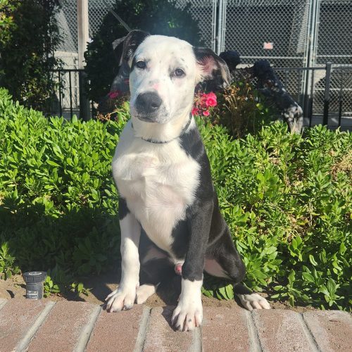 This beautiful puppy was found on the side of a busy road with their siblings. We are not sure of the breed, but it looks very much like a Cattledog mix, which will be medium-sized when fully grown.  Their story is one of both heartbreak and survival. The puppies had clearly been abandoned, left with no food, no shelter, and no one to keep them safe. Tragically, one of their siblings didn’t survive—struck by a passing car before help could arrive.  The surviving puppies were frightened and unable to fend for themselves. Fortunately, a kind person picked them up.  When they arrived here, they relied on each other for comfort and were so scared.  But in a very short amount of time, with the love and care of our staff, these resilient pups began to recover. Slowly, their tails started to wag and their playful spirits emerged. Today, each of them has a chance at the happy, safe life their sibling never got to experience.  Their journey is a reminder of the harsh reality many animals in our community face, but also of the incredible resilience and hope that can grow when compassion steps in. He weighed 37 pounds on intake.  $350.00 adoption includes the surgery, vaccinations, and microchipping.