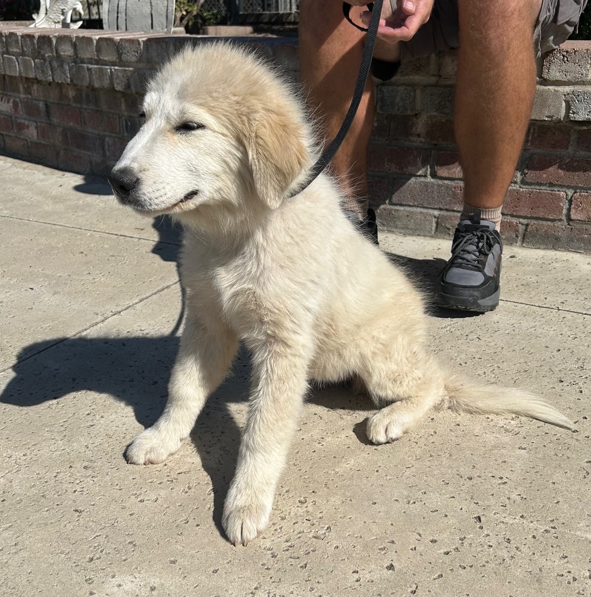 Who is ready to take home a big, fluffy puppy? This great pup is Yuki, and she appears to be a pure Great Pyrenees, but since she was a stray, we don't have an official pedigree. We estimate she is about 3 months old, and she is as sweet as can be. We have started her on her first set of puppy shots, and she will be microchipped and spayed on 10/21. She will be able to go to her new home as soon as 10/22. Yuki gets along with everyone and everything. She will make a great companion. $350.00 adoption helps us with the cost of her care.