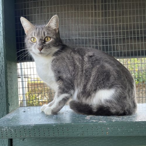 Meet Miffy, a loving gray/white DSH who is about 5 to 6 months of age. According to the people who brought her in, Miffy is super gentle and friendly. She loves getting attention and belly rubs, and she remains very calm and relaxed, even during baths. She gets along well with the other cats here and was in a home prior with dogs and kids. She seems to adjust well to everything. She has been vaccinated, microchipped and has a spay appointment on 2/4 so can go home just in time to be your Valentine! $125.00 adoption.