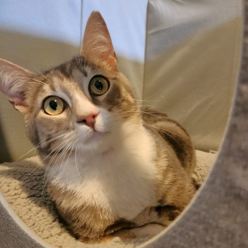 This gentleman is named Milo! Milo is an absolute sweetheart, and he came to our shelter with his sister, Bea. They were born sometime in September of 2025. They were both rescued from a car engine when they were small kittens, and were lovingly cared for by their rescuer until they found their way to us to look for their forever homes. They are wonderful, social kittens, and received all their initial shots, so they're healthy and ready for their new families. Milo is neutered and microchipped as well. $125 adoption fee. Apply today at petsnpals.org!