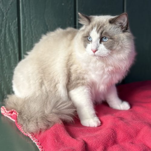Meet Musubi, a stunning 14-pound Ragdoll who perfectly embodies the gentle and social nature his breed is known for. Musubi is a true companion cat who thrives on human interaction. He has spent plenty of time around people of all ages, including young children, and has consistently shown himself to be patient, affectionate, and easygoing. This handsome boy is looking for a new home through no fault of his own, as his previous owner’s landlord unfortunately enforced a no-pet policy. He is now searching for a stable, loving environment where he can settle in permanently. A $125 adoption fee helps with some of the costs of his care here, including his neuter, and ensures he goes to a dedicated home.
