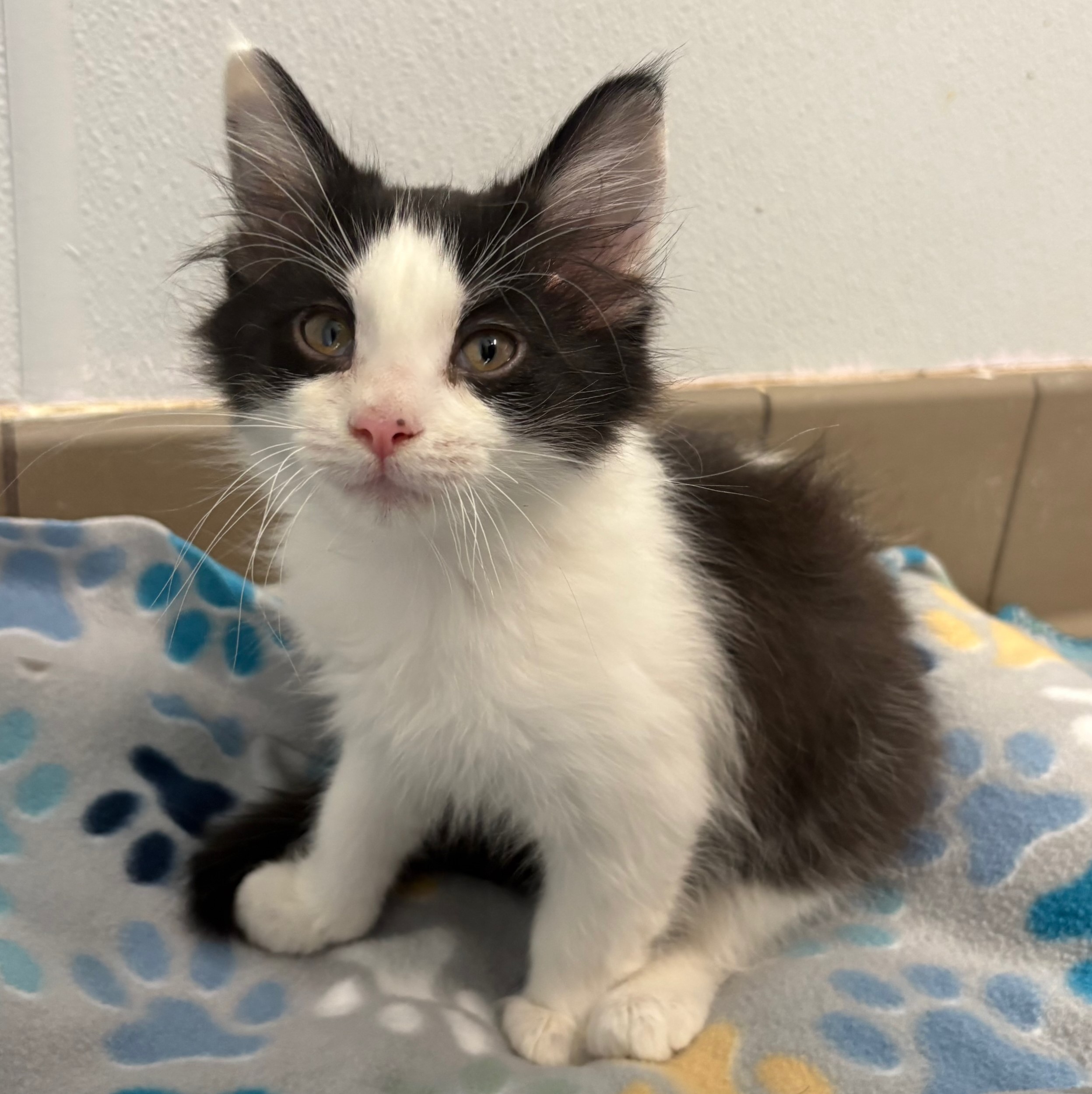 Get ready for double the fluff and double the fun with Fork and Spoon! Born on 11/18/2026 these two adorable siblings are long-haired, black-and-white bundles of energy looking for their forever family. They are currently at the perfect age for play and bonding, and they have already mastered their litterbox manners. Both kittens are social butterflies who are great with other cats, making them an excellent addition to a multi-pet household or a perfect "starter pack" for a home looking for instant companionship. We are committed to sending these cuties home healthy and safe. Before leaving the shelter, both Fork and Spoon will be spayed/neutered; they have also received their first round of kitten shots and a microchip. The adoption fee is $125 for a single kitten, but we love when kittens are adopted together to prevent single kitten syndrome, so we offer $225 for the duo. Don’t wait to meet your new best friends—apply today at www.petsnpals.org!