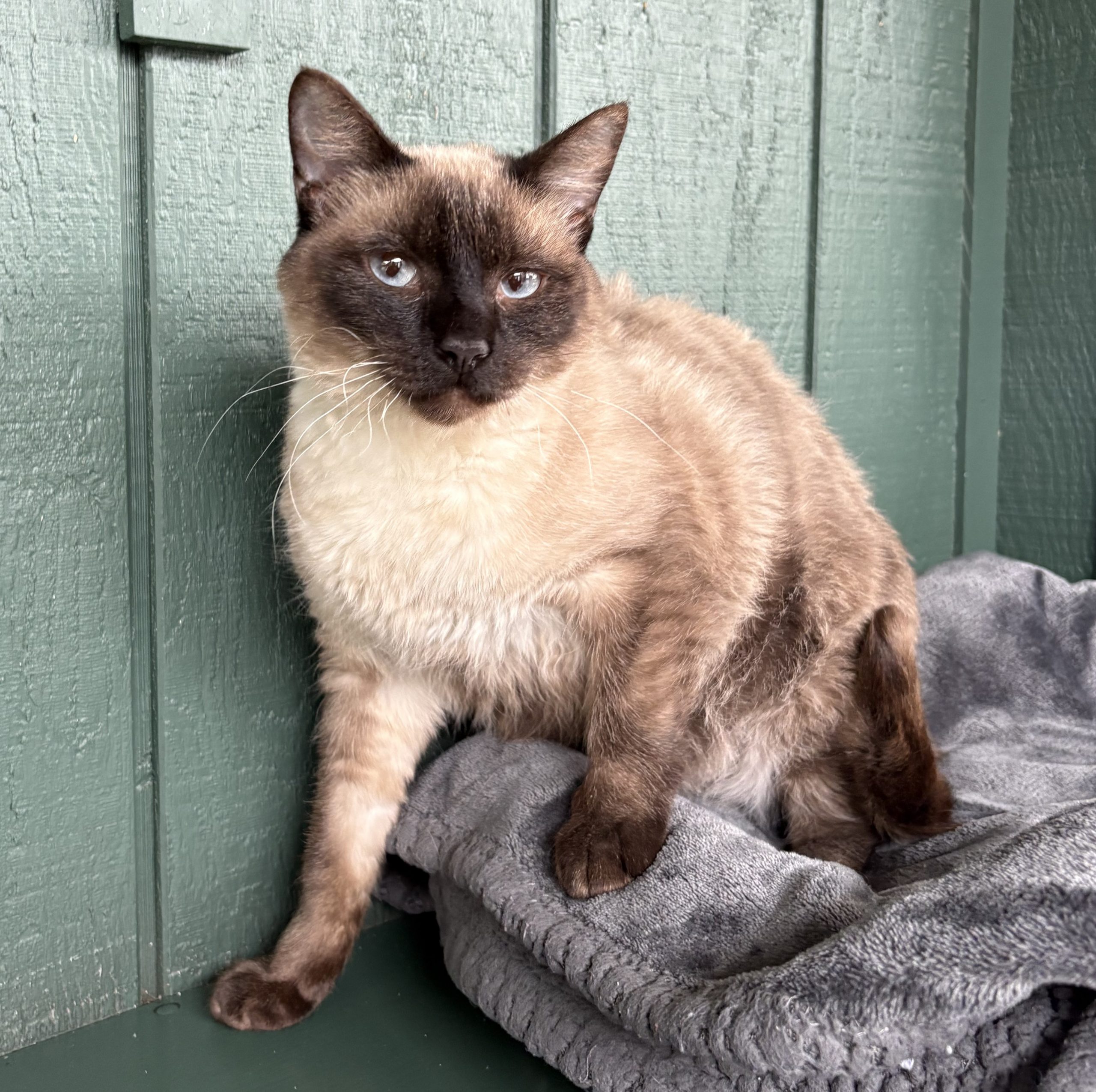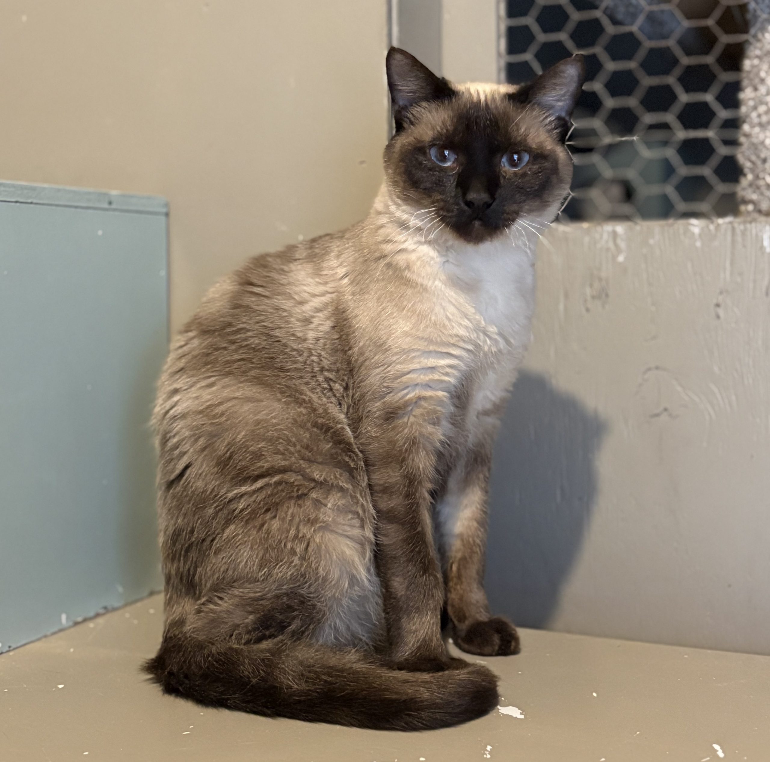 Sakura is a beautiful 4-to-5-month-old Siamese kitten with striking blue eyes and a soft coat. While she can be a little shy at first, she has a gentleness to her that is clear. Cats are so sensitive to change, and her introduction into the world wasn't the best one. Strangers can be a bit scary to her. Sakura is looking for a calm and patient home where she can take her time to get comfortable and blossom into a confident companion. She needs someone to show her what love and comfort finally feel like. She leaves the shelter spayed, vaccinated, and microchipped. $125 adoption fee.